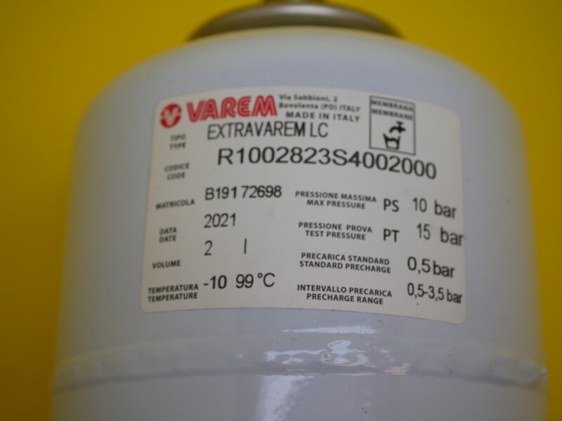 Expansion Vessel 2 Litre 10Bar 0.5Bar Pre charge Pressure
